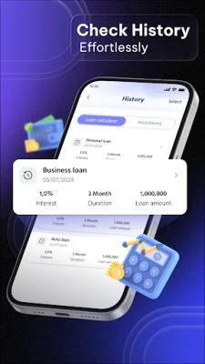 除了全面的贷款计算功能,"Loan Calculator: Plan Finance" 也是您值得信赖的投资理财伙伴。通过固定存款 (FD) 和循环存款 (RD) 计算器,您可以轻松追踪存款增长、预估利息收益及未来的到期价值,为您的财富增值之路提供清晰指引。更具特色的是,其内置的对比功能允许您将多种贷款方案并排比较,无论是个人贷款、商业贷款、房贷还是车贷,都能让您一目了然地识别最佳选择。所有过往的计算记录都会被妥善保存,随时回顾,方便决策。